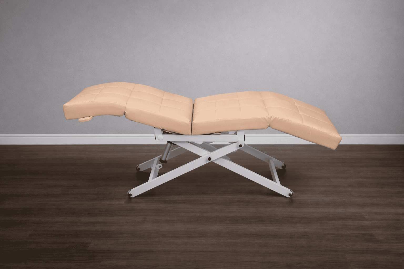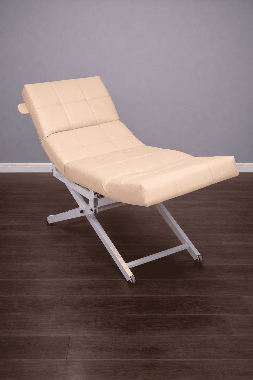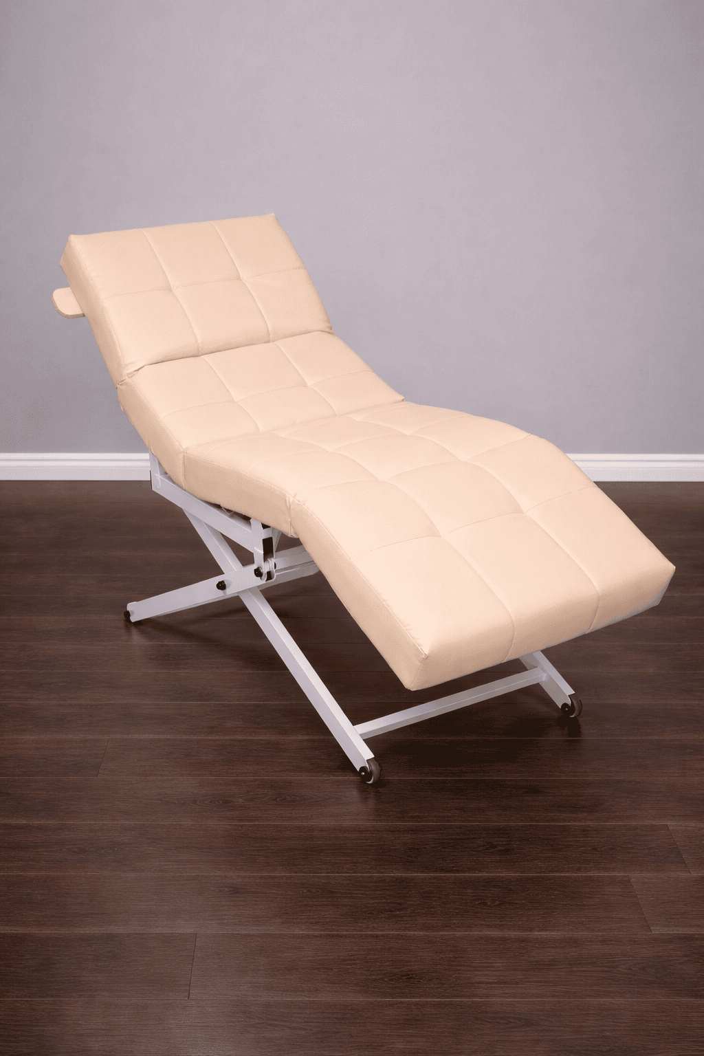 Анатомическая форма кушетки снимает нагрузку со спины клиента и предотвращает отёк ног, благодаря чему он может долгое время лежать без дискомфорта и болевых ощущений.
