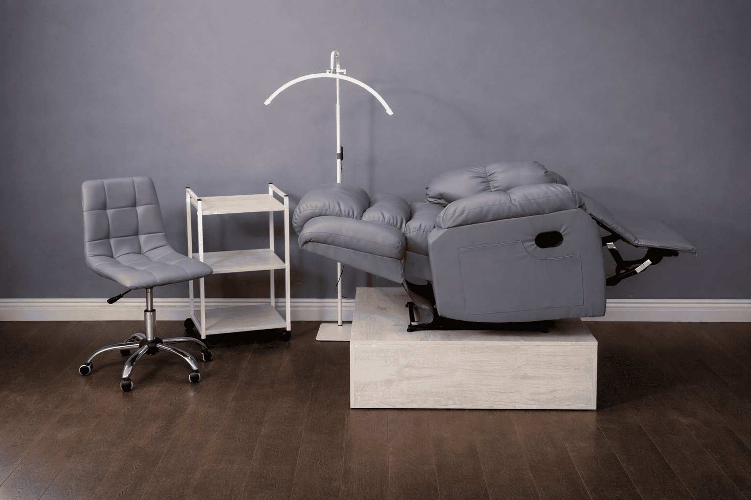 — Реклайнер механический с раскладкой на 180 градусов, данная модель популярна в бьюти сфере, позволяет расслабиться клиенту во время долгой процедуры.