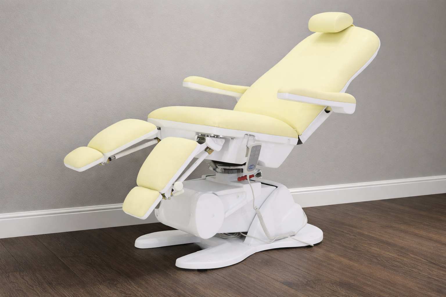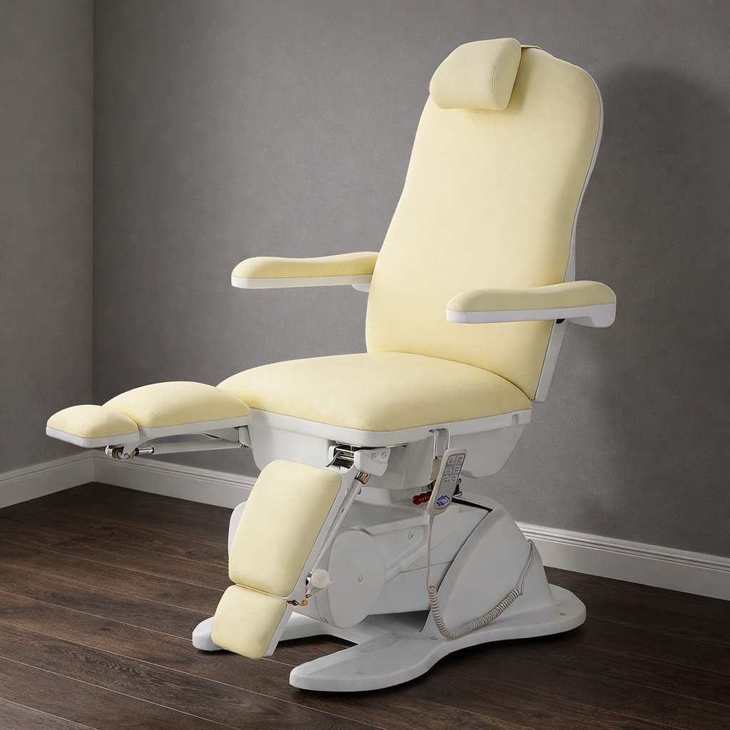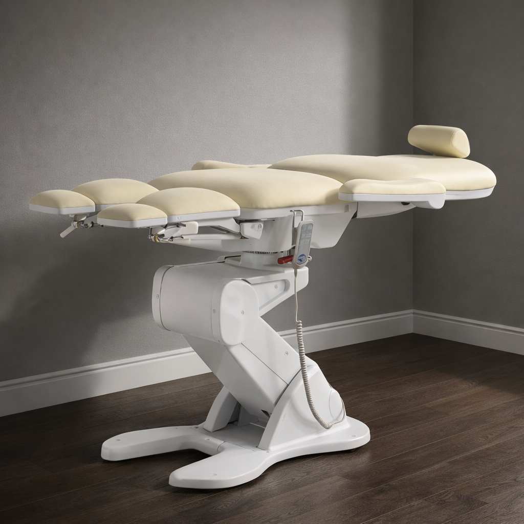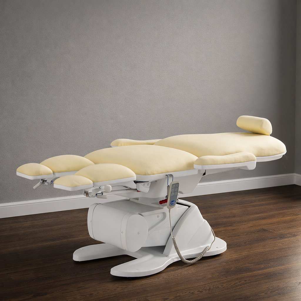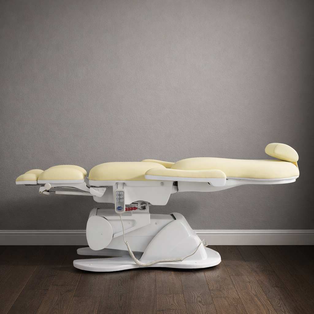 Кресло имеет семь секций, которые можно регулировать по углу наклона и положению. Это позволит подобрать наиболее комфортную позу для конкретной процедуры.