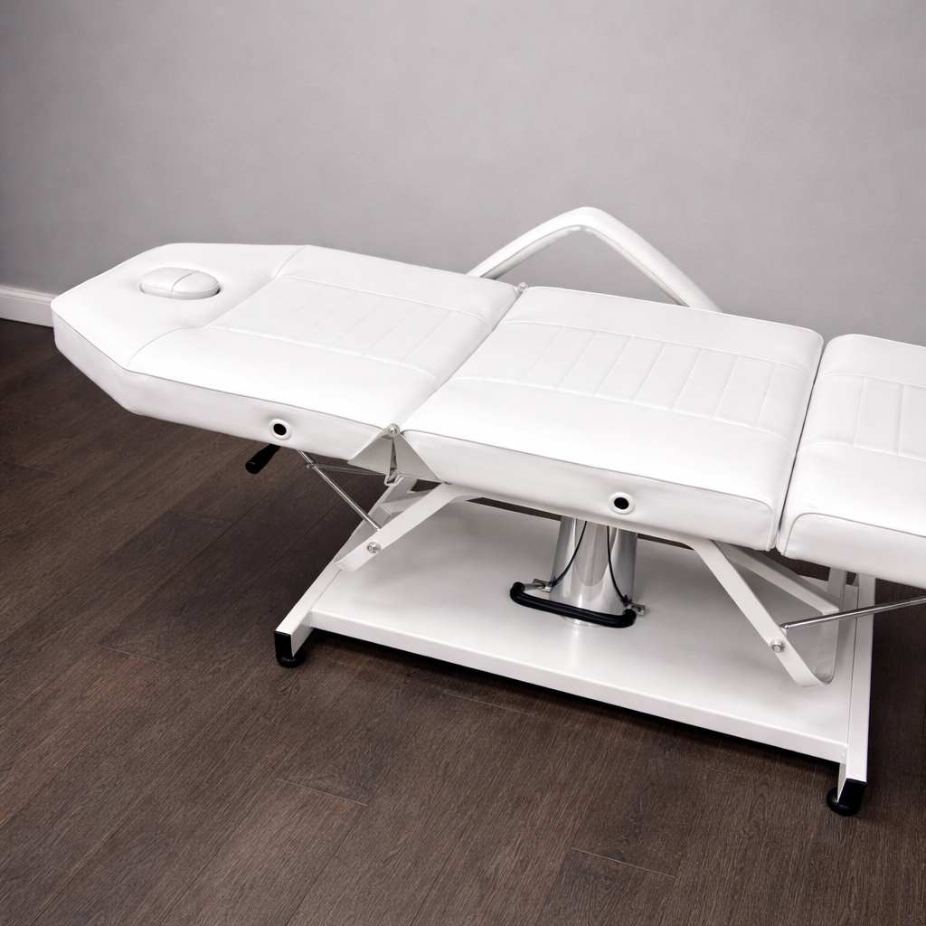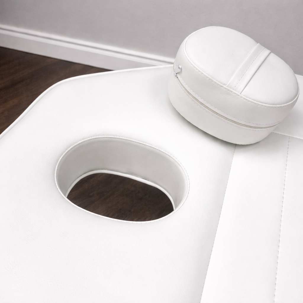 Оснащено анатомическим матрасом, подлокотниками и подголовником с отверстием для лица.