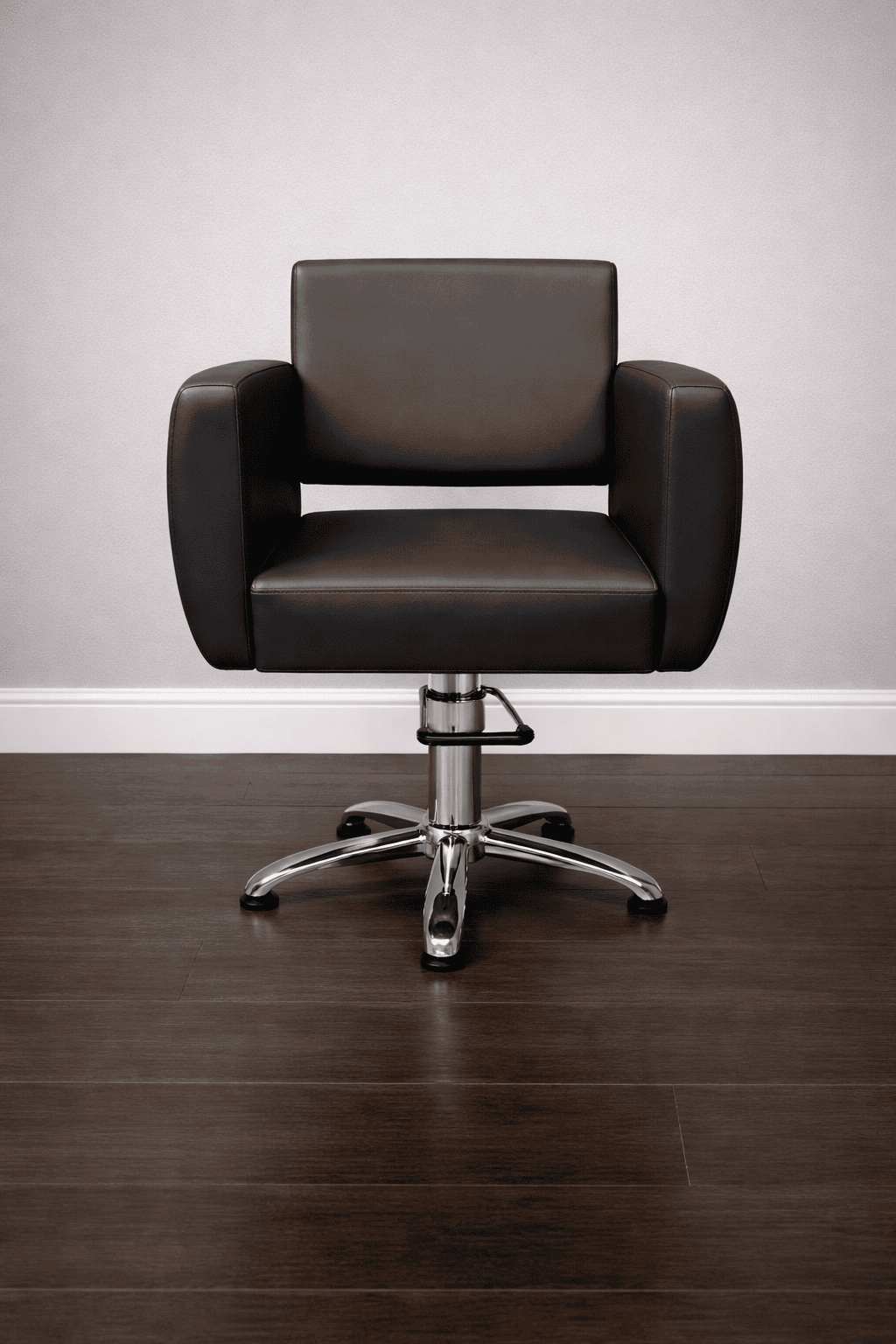 Оригинальная модель парикмахерского кресла АДЕЛЬ снабжена удобными мягкими подлокотниками округлой формы