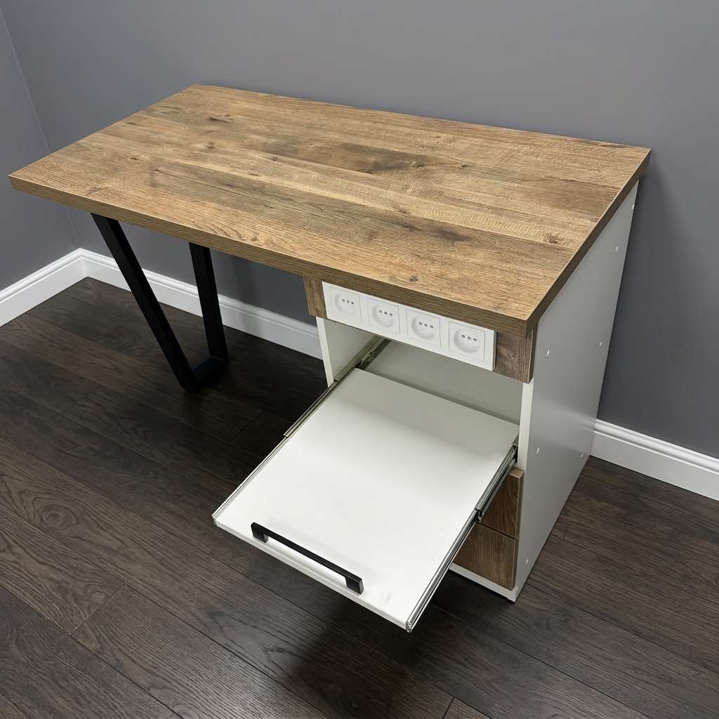 В стол встроены 4 розетки и удлинитель, что обеспечивает удобство использования различных инструментов и приборов.