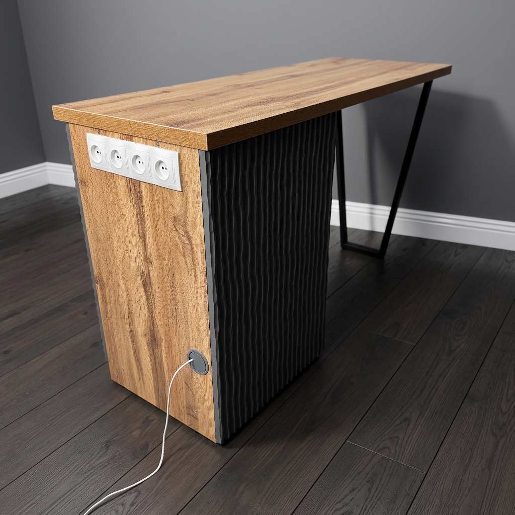 В стол встроены четыре розетки и удлинитель.