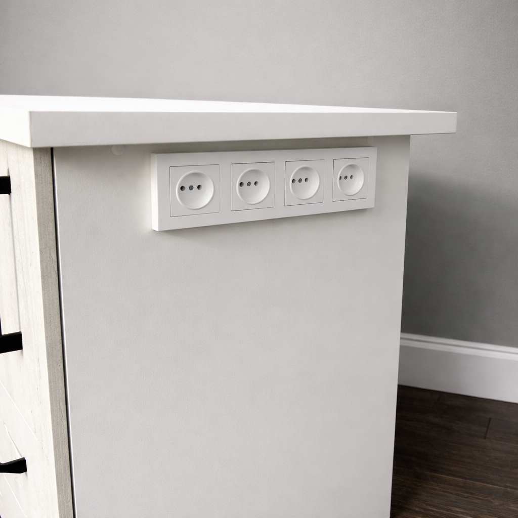 В стол встроены четыре розетки и удлинитель.