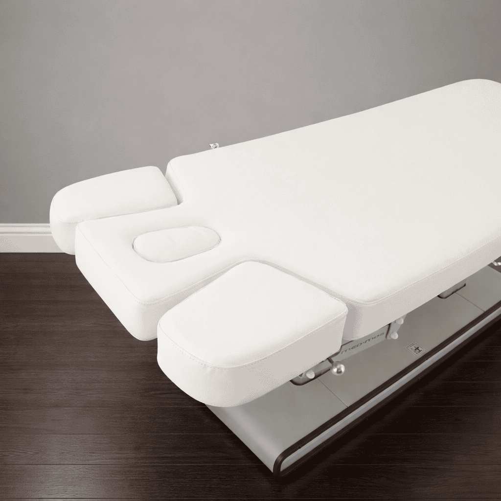 Этот массажный стол с электроприводом обладает еще одним преимуществом. Его рабочая поверхность выполнена из упругого поролона (способным удерживать первоначальную форму даже при длительном использовании). В свою очередь, он покрыт качественным винил-люксом, легким в уходе и долговечным в эксплуатации.