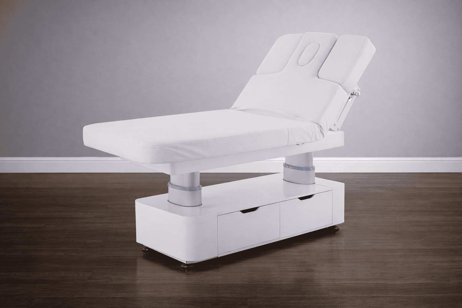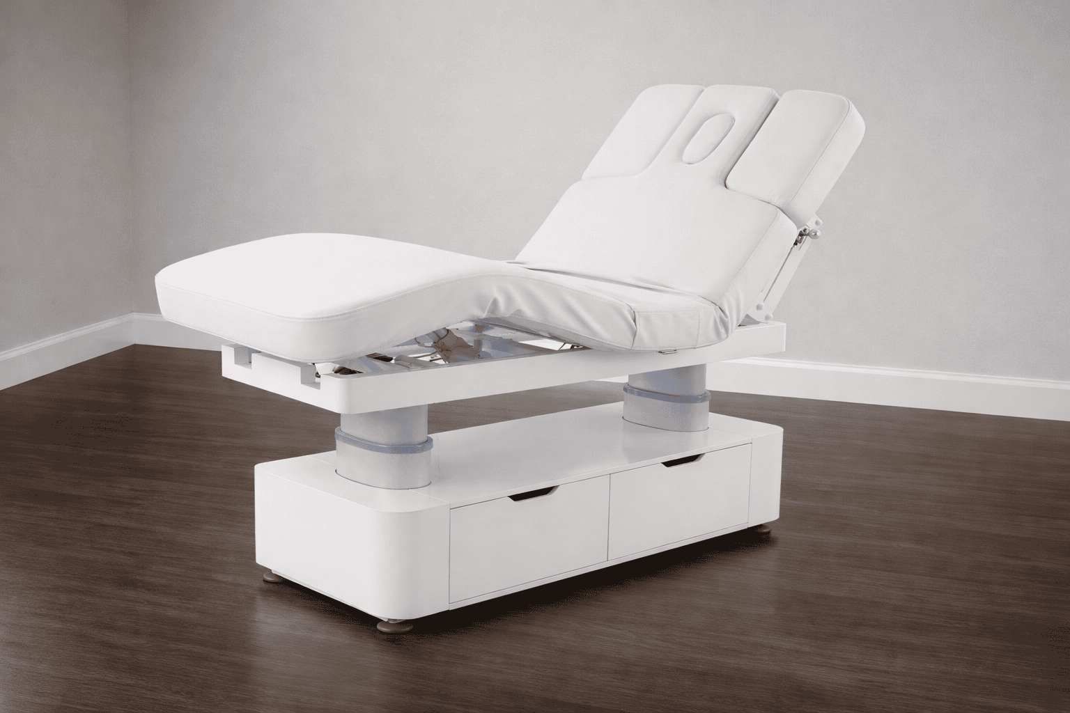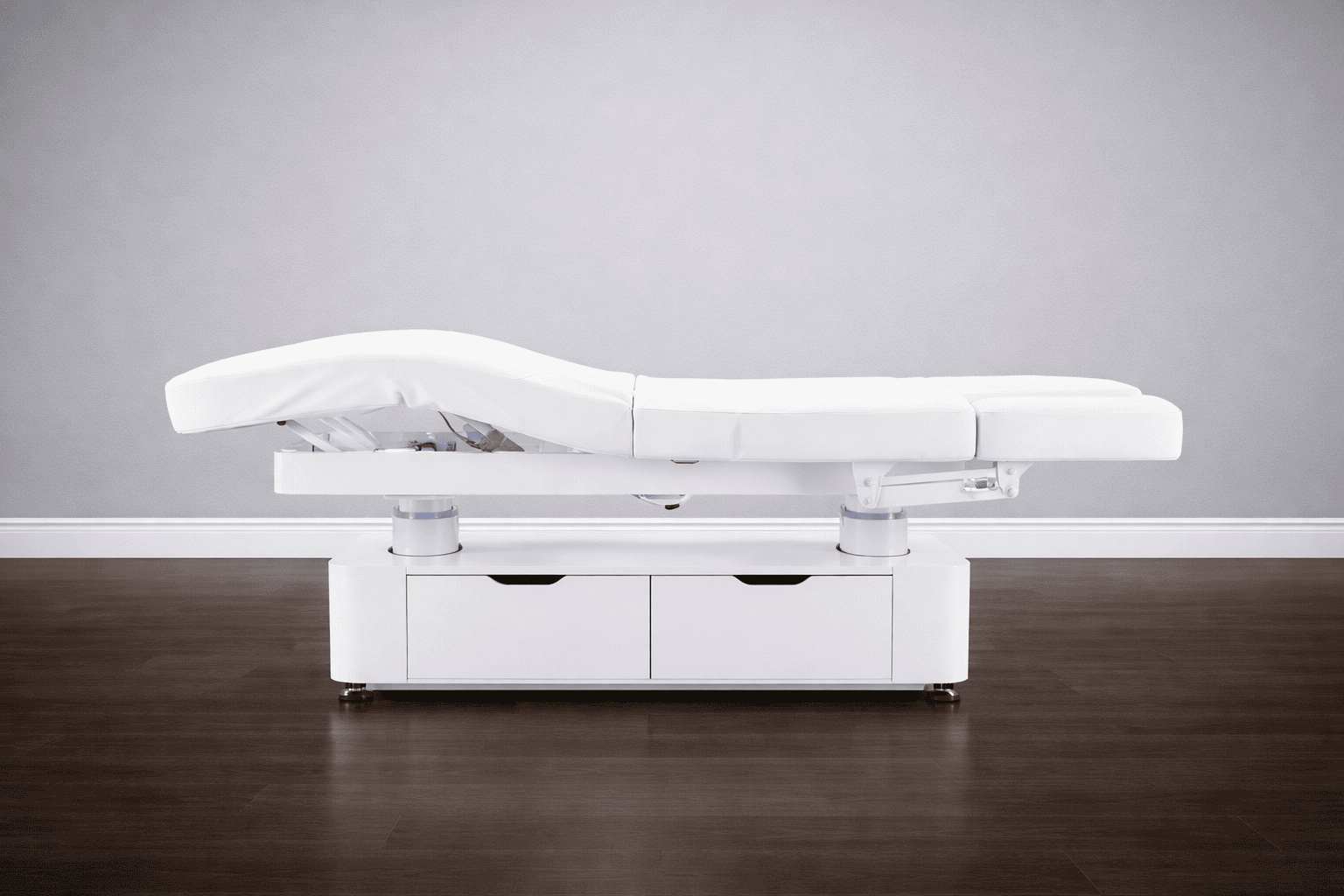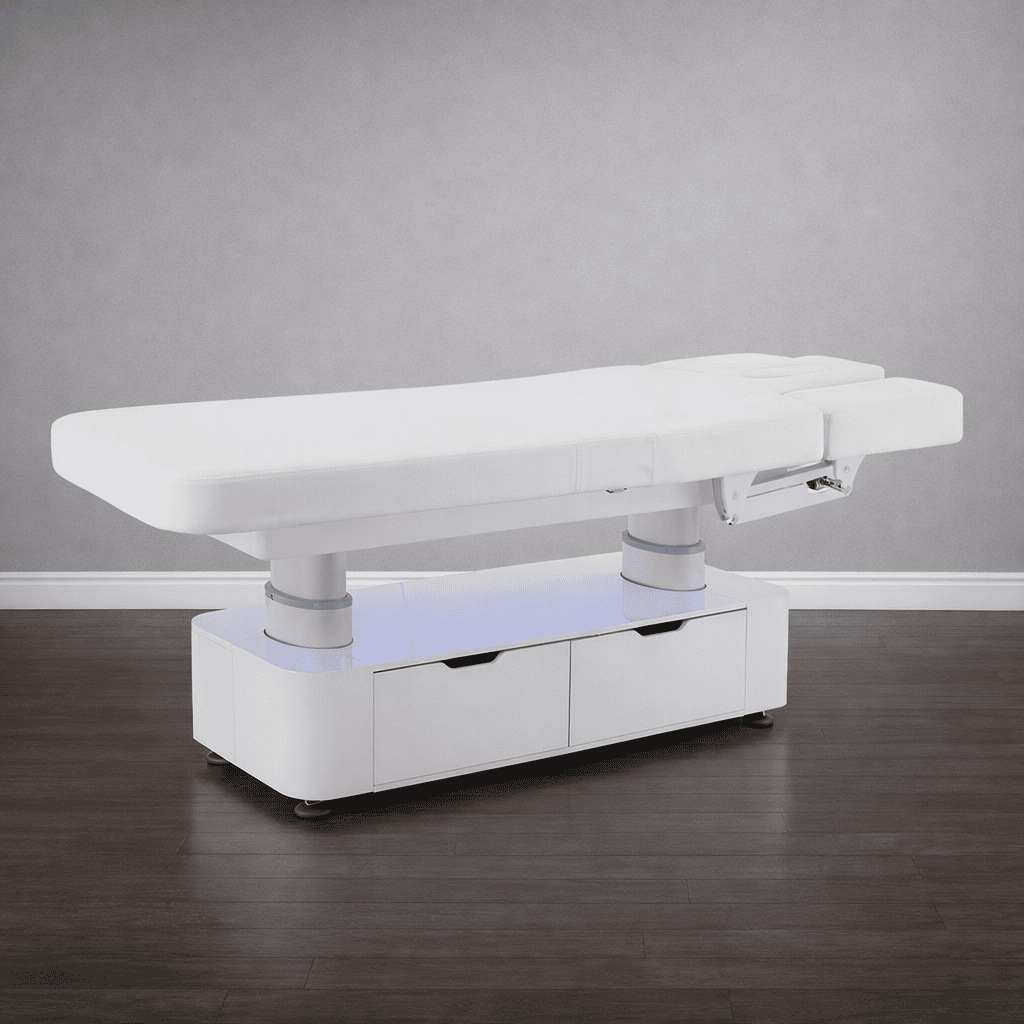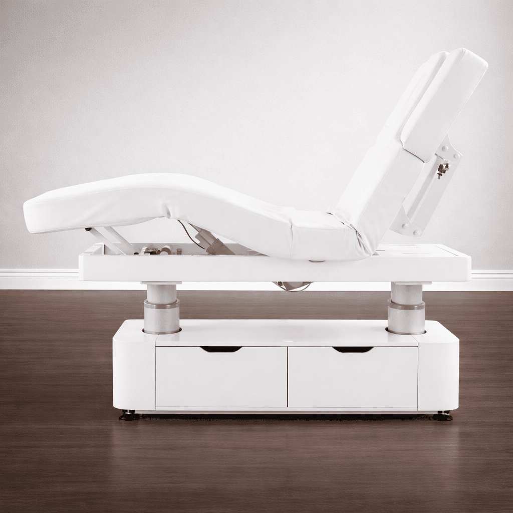 Стол изготовлен с учётом всех потребностей современной индустрии красоты. Мягкое и комфортное ложе имеет несколько секций и 4 мотора для плавной регулировки высоты и угла наклона подвижных частей. Рама изделия выполнена из стали высокой прочности и выдерживает нагрузку до 150 кг, что гарантирует долгий срок службы оборудования.