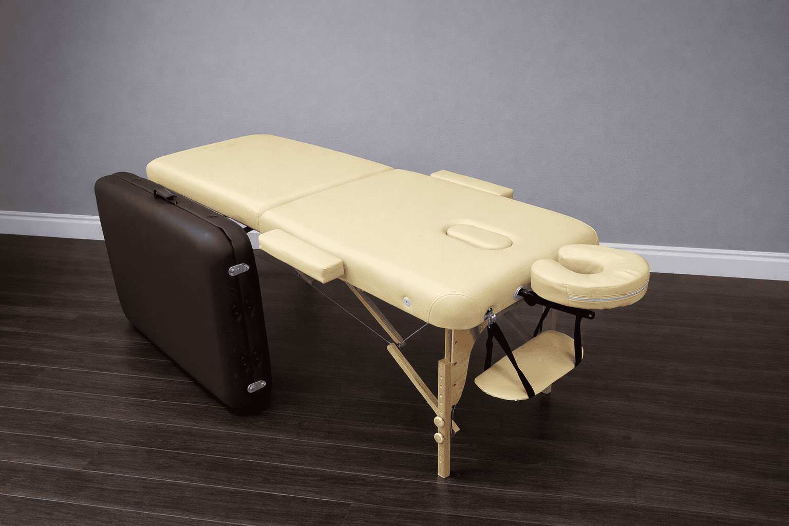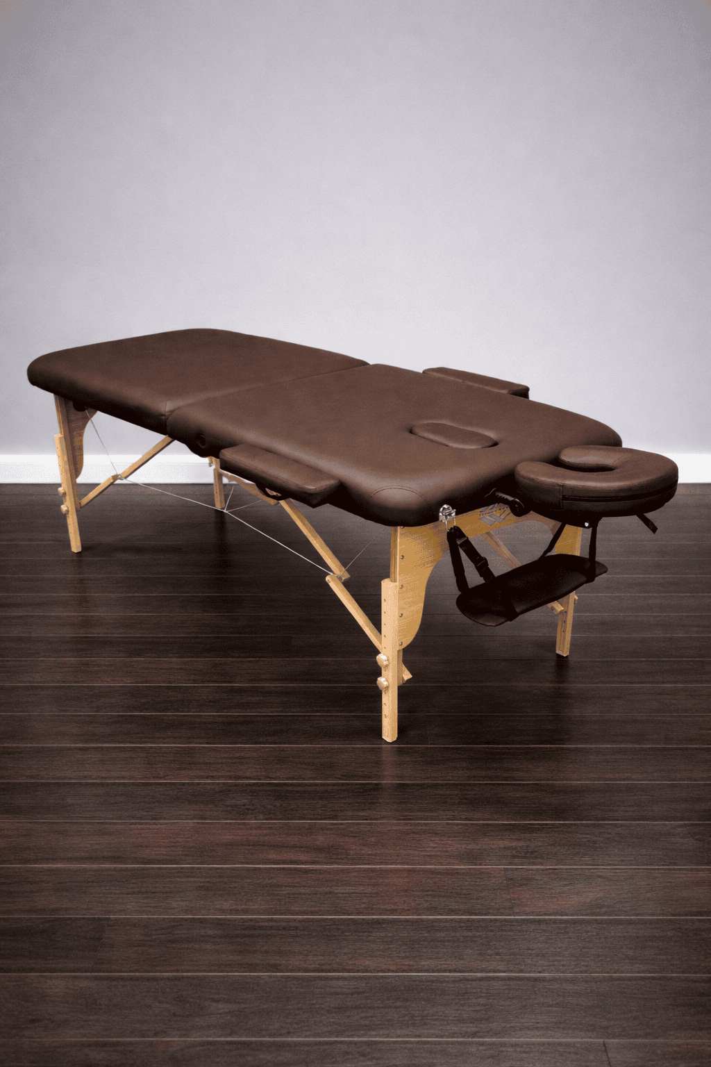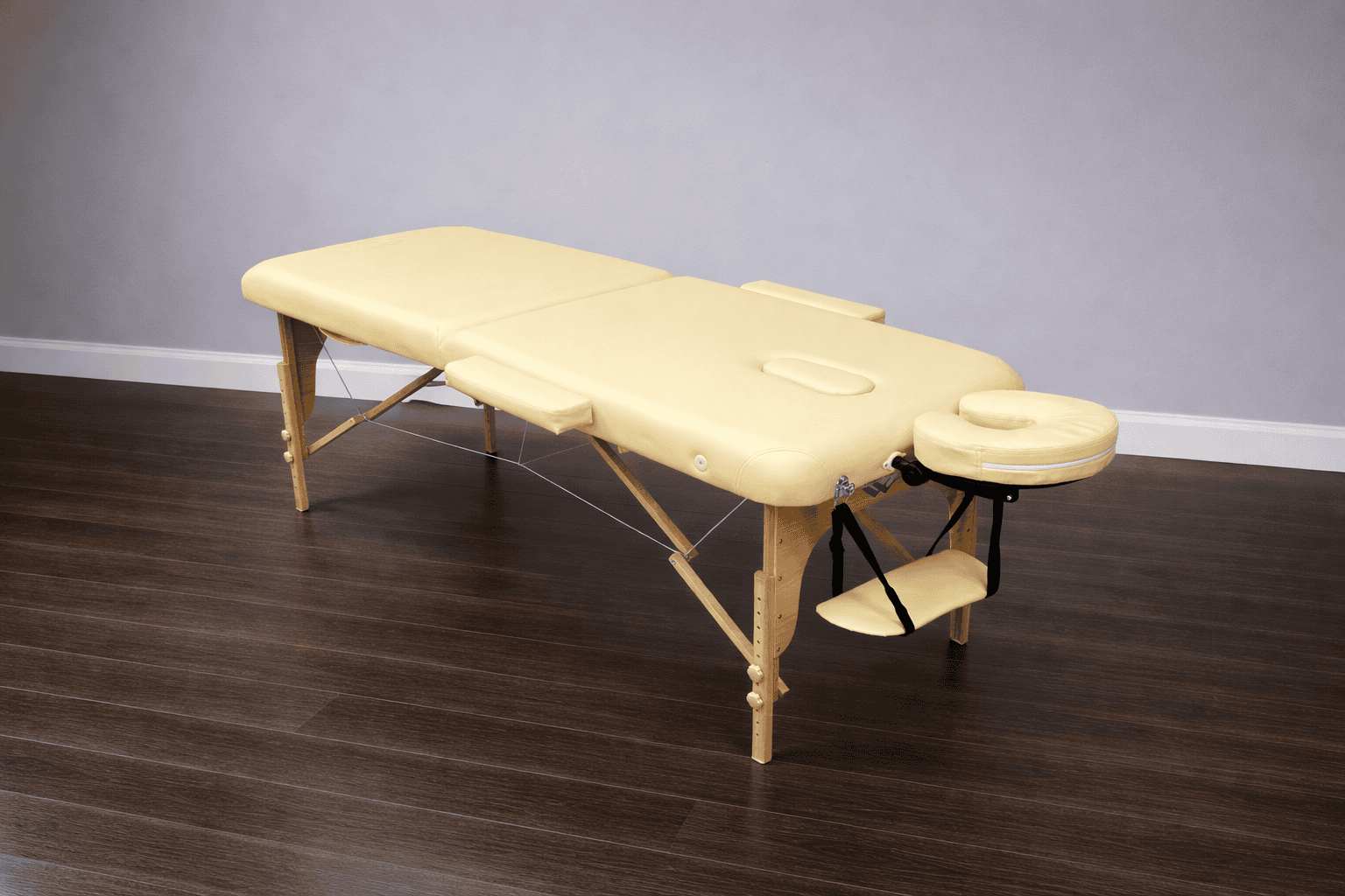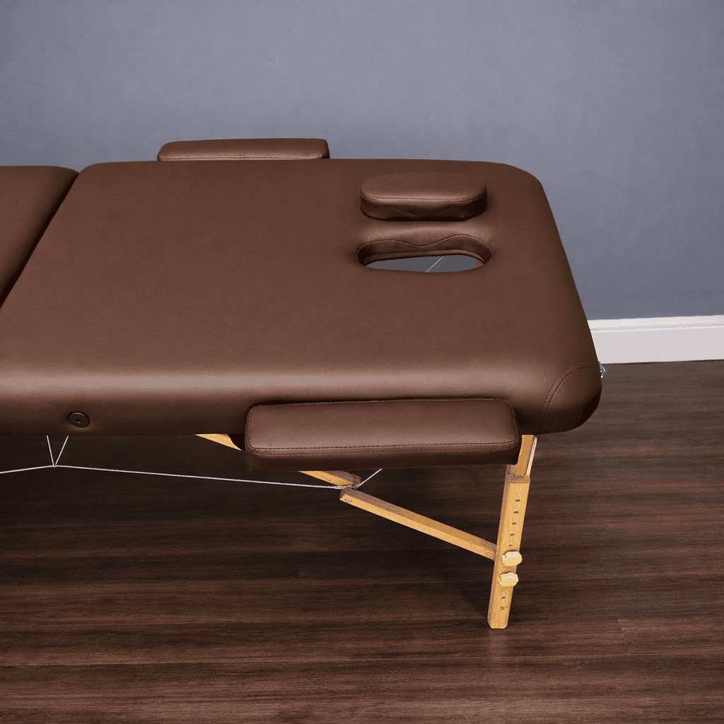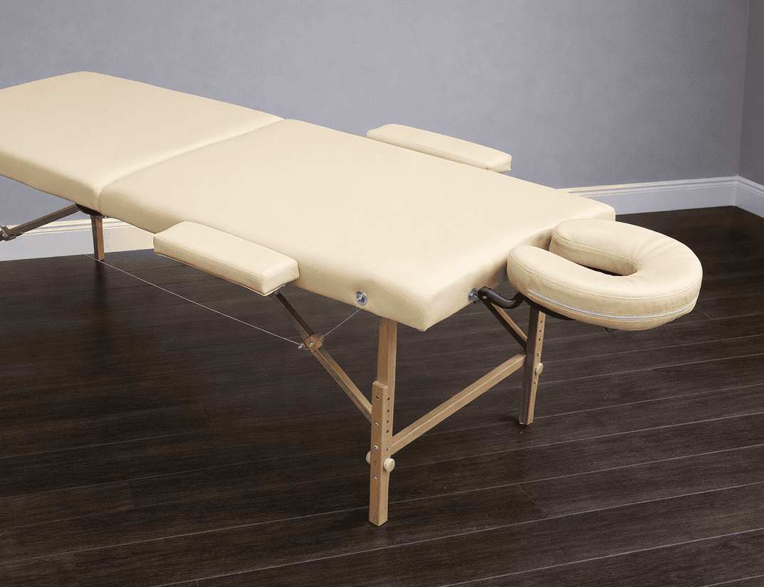 Массажный стол изготовлен из натурального бука, благодаря чему, является одним из самых легких портативных столов для массажа.