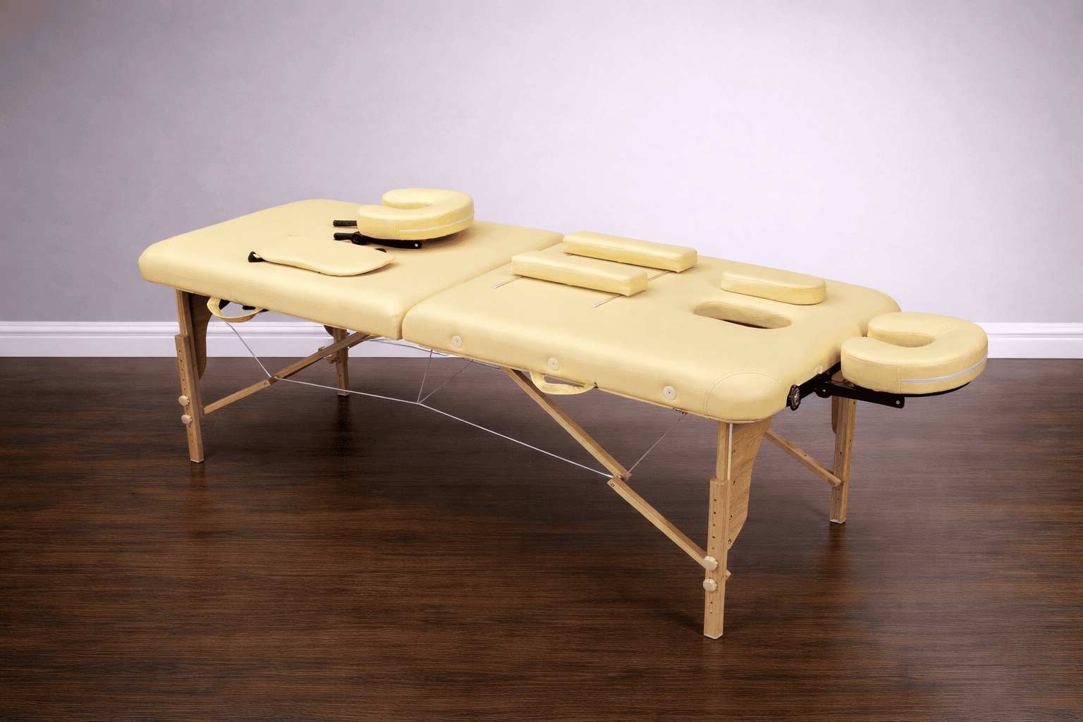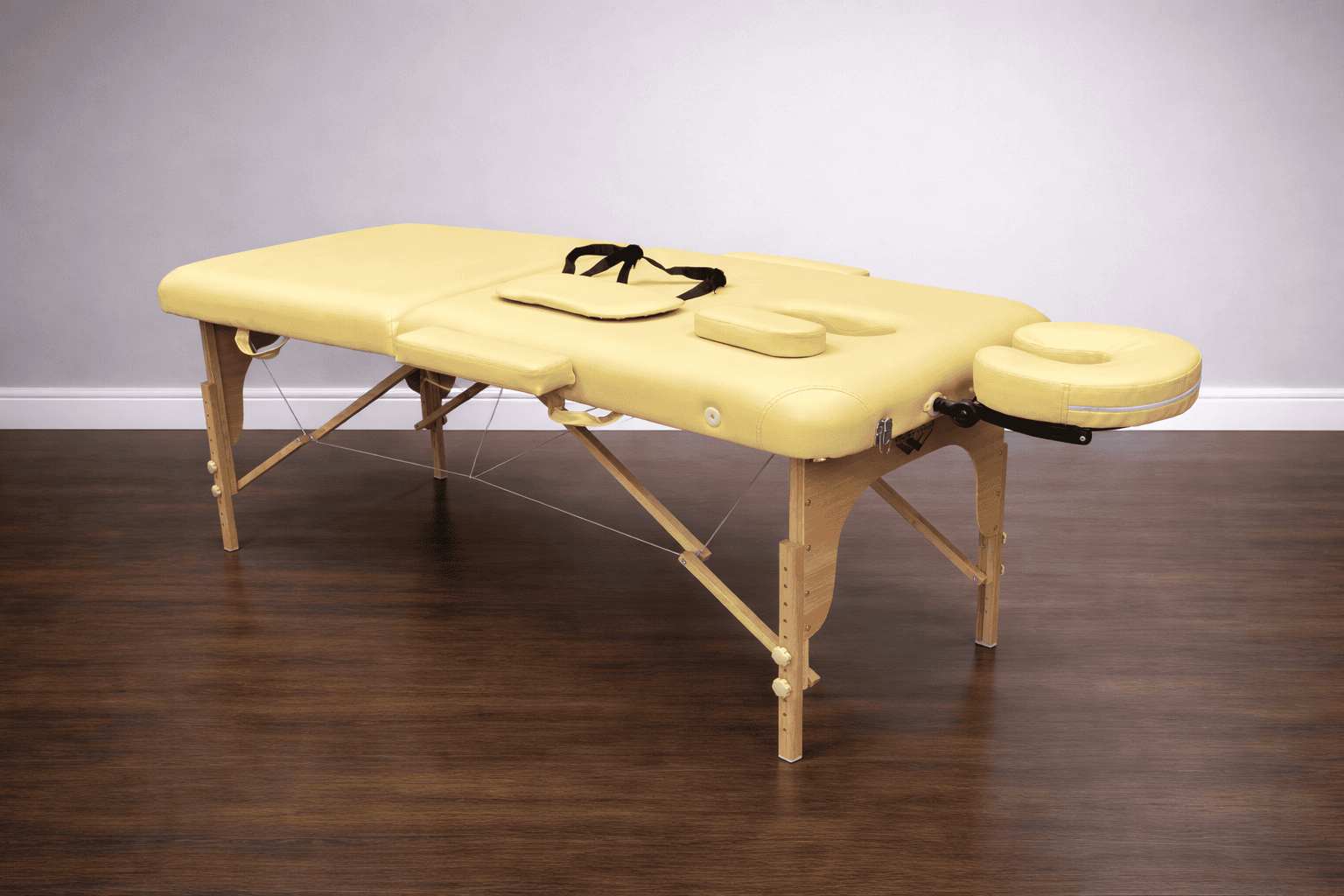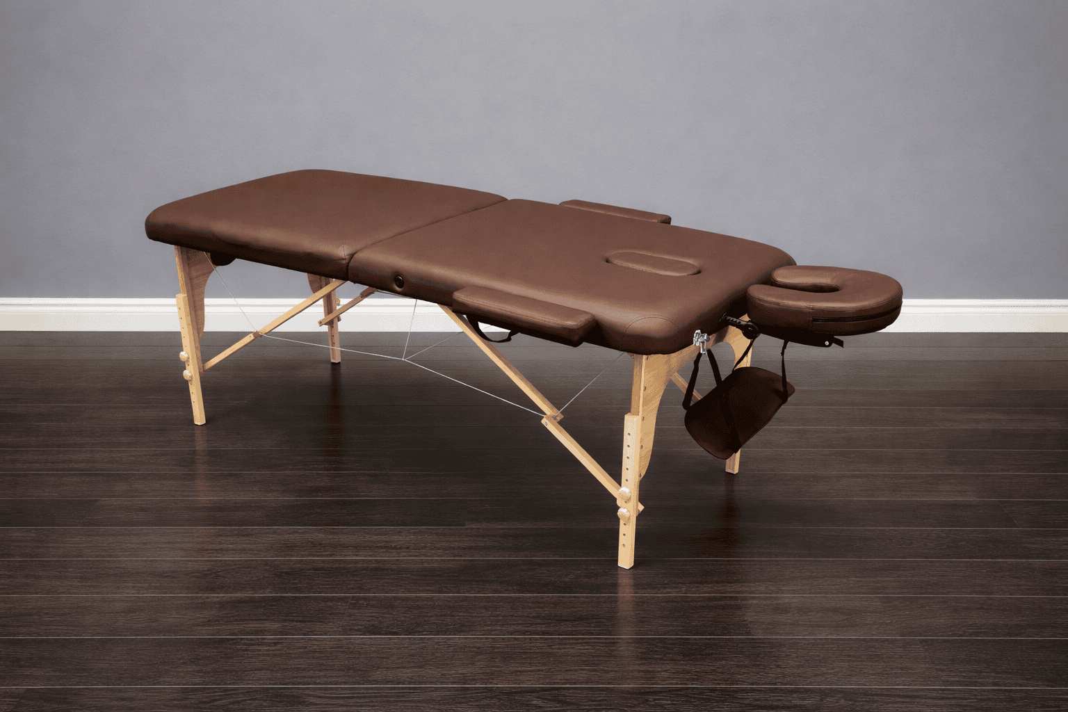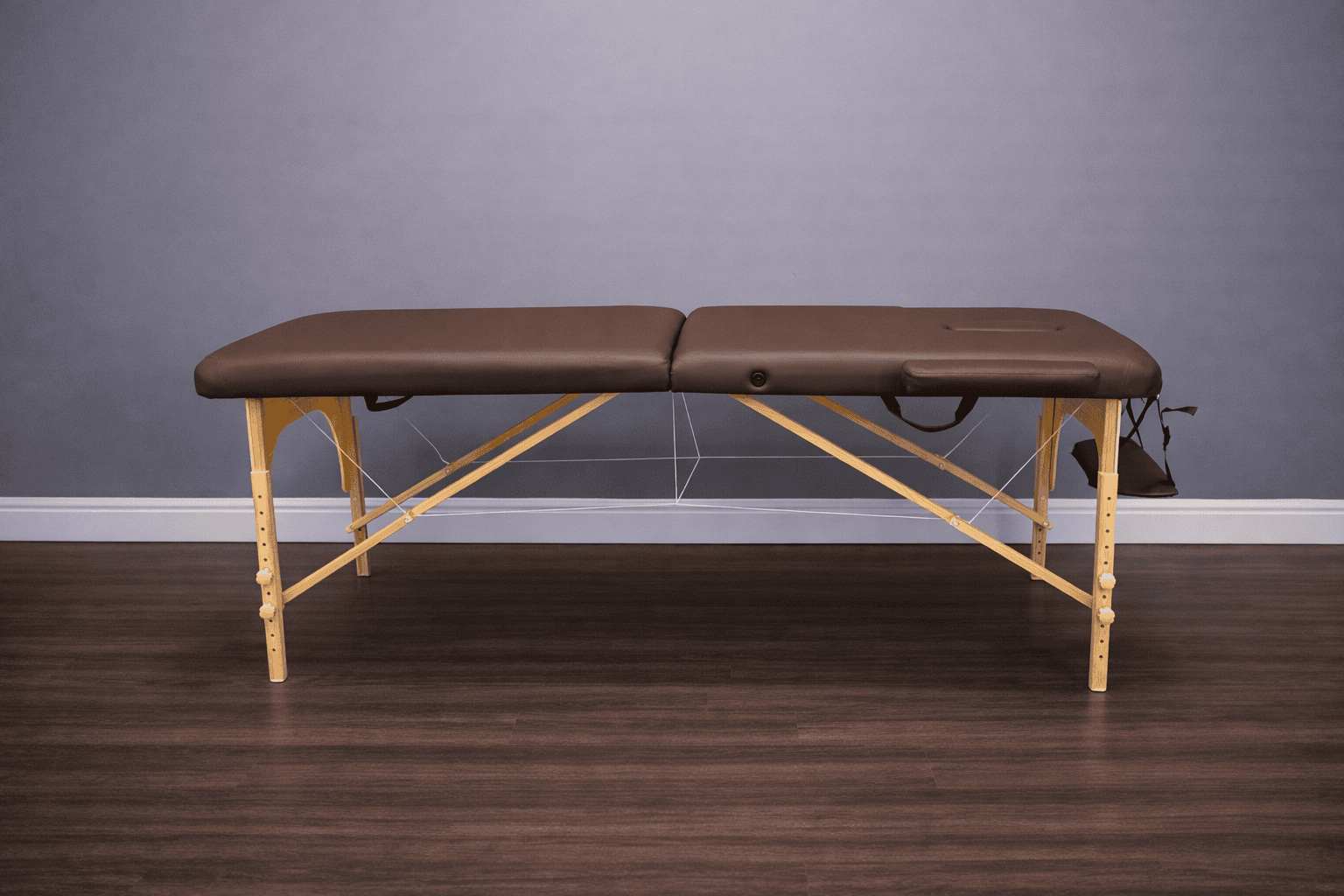 Массажный стол изготовлен из натурального бука, благодаря чему, является одним из самых легких портативных столов для массажа.