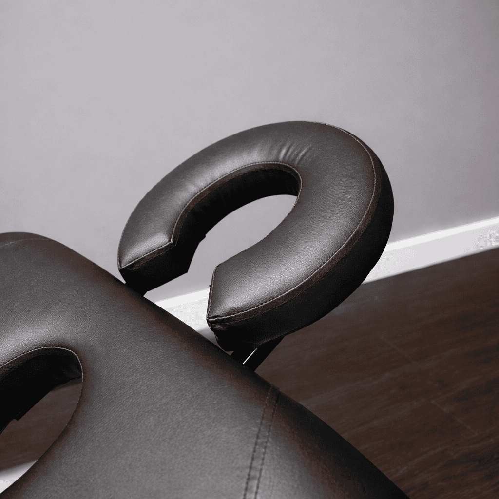 В ложе — мягкий прочный поролон толщиной 8 см, обитый качественной экокожей. Есть вырез для лица, на который можно положить подушку, которая идёт в комплекте.