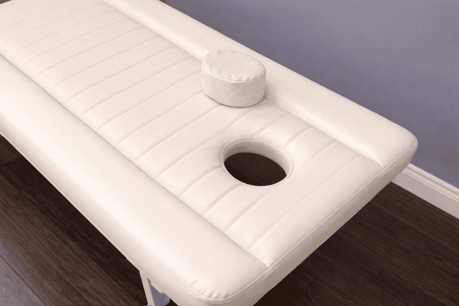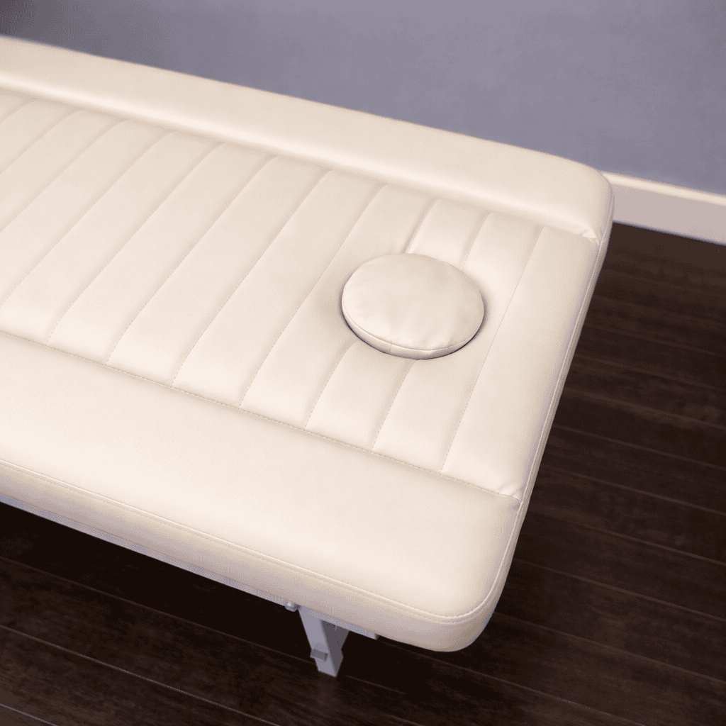 Стационарный массажный стол выполнен в соответствии с современными стандартами, имеет вырез для лица, подушку, и обеспечивает максимальный комфорт клиенту и мастеру во время массажа или косметологических мероприятий.