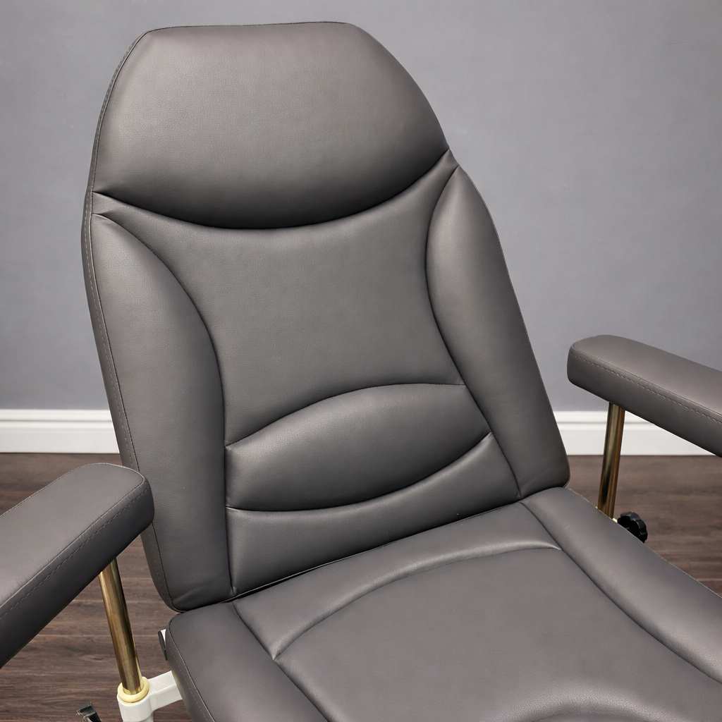 Полиуретан высокой плотности в ложе делает положение клиента правильным. Обивку из экокожи легко всегда поддерживать в чистоте.