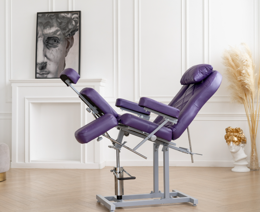 Стопа клиента поднимается максимально до 110 см от пола - Подлокотники поворачиваются и регулируются по высоте, что позволяют комфортно присаживаться в кресло и проводить длительные процедуры
