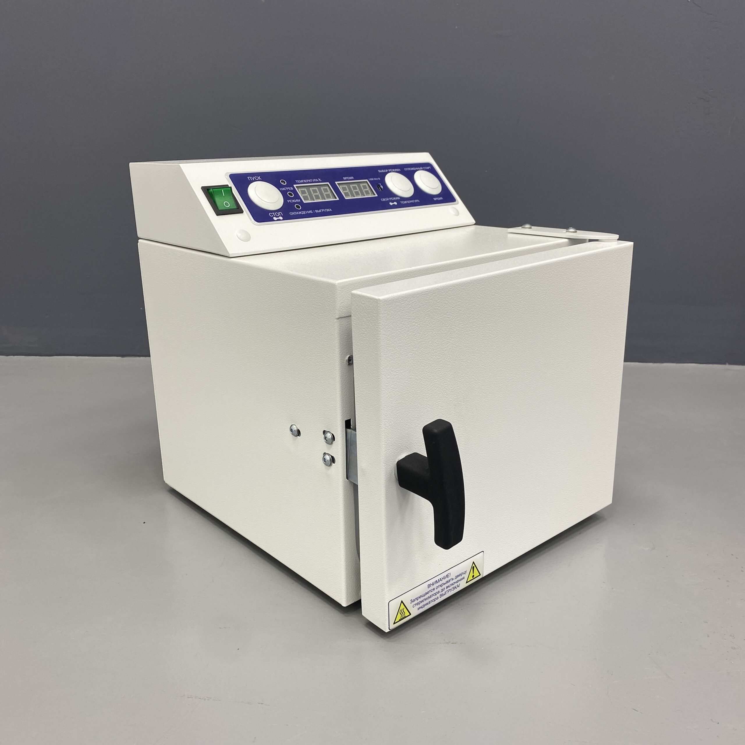 Стерилизатор «Ферропласт» при загруженной стерилизационной камере должен обеспечивать автоматическую поддержку температурных режимов в диапазоне от +85°С до +180°С и времени стерилизационной и дезинфекционной выдержки, а также пользовательского программируемого режима +50°С до +200°С, интервалом от 1 до 999 минут.
